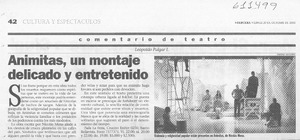Animitas, un montaje delicado y entretenido [artículo] Leopoldo Pulgar La Tercera (Santiago) oct. 20, 2000, p. 42 fot. .