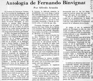 Antología de Fernando Binvignat [artículo] Alfredo Aranda.