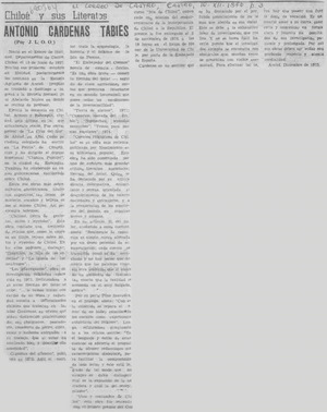 Antonio Cárdenas Tabies [artículo] / J. L. O. O. El Correo de Castro (Castro, Chile)-- dic. 10, 1976, p. 3. .