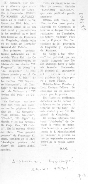 Añañuca [artículo] / O. A. G. Atacama (Copiapó, Chile)-- jun. 29, 1971, p. 3. .