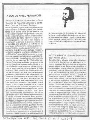 La Hoja Verde (Santiago, Chile)-- no. 131 (dic. 2002) p. 20.