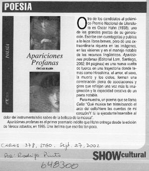 Apariciones profanas - Autores chilenos - Hahn, Oscar
