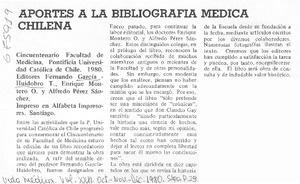 Aportes a la bibliografía médica chilena. [artículo] Vida Médica (Santiago, Chile)-- vol. 31 (oct. nov. dic. 1980) p. 29. .
