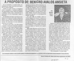 A propósito de Benigno Ávalos Ansieta [artículo] Nélida Baros Fritis Chañarcillo sept. 6, 2000, p.3 retr. .