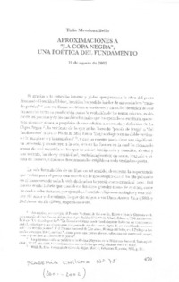 Aproximaciones a "La copa negra", un poética del fundamento [artículo] / Tulio Mendoza Belio. Academia Chilena (Revista: Santiago, Chile)-- no. 75 (2001-2002) p. 479-483. .