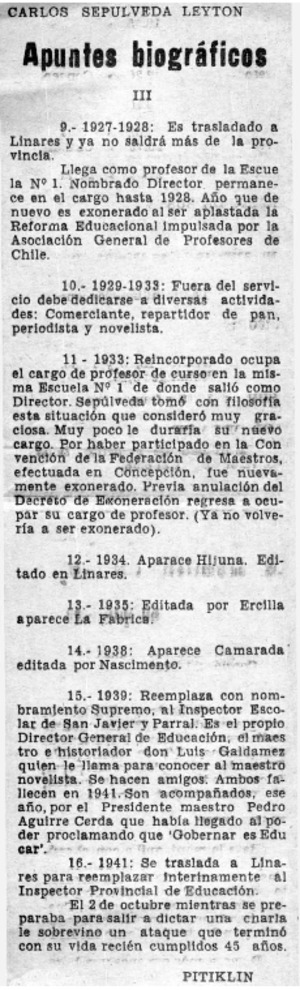 Apuntes biográficos [artículo] / Pitiklin. El Heraldo (Linares, Chile)-- oct. 11, 1981, p. 3. .