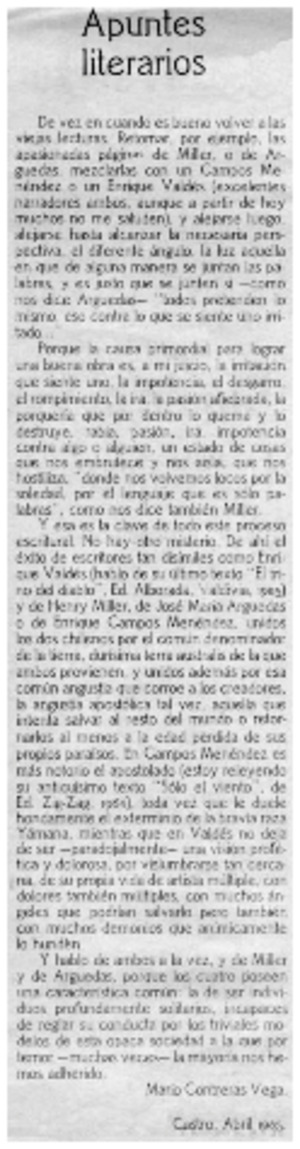 Apuntes literarios [artículo] Mario Contreras Vega.