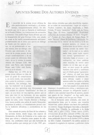 Apuntes sobre dos autores jóvenes [artículo] Jaime Lizama.
