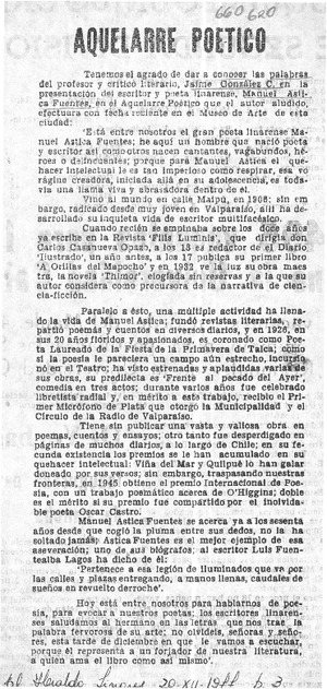Aquelarre poetico. [artículo] El Heraldo (Linares, Chile)-- dic. 20, 1977, p. 3. .
