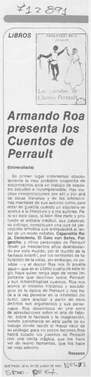 Armando Roa presenta los cuentos de Charles Perrault [artículo] Rosasco.