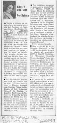 Arte y cultura [artículo] / Robina. Las Últimas Noticias (Diario : Santiago, Chile)-- mayo 22, 1979, p. 8. retr. .