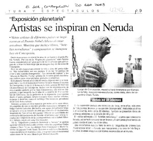 Artistas se inspiran en Neruda [artículo] El Sur (diario : Concepción, Chile)-- ago. 20, 2003, p. 9. .