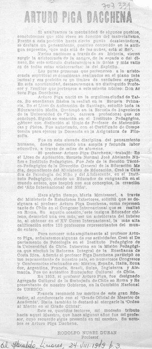 Arturo Piga Dacchena [artículo] / Rodolfo Núñez Durán. El Heraldo (Linares, Chile)-- ago. 24, 1979, p. 3. .