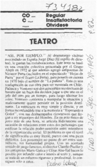 Así por ejemplo" [artículo] / Pedro Labra. Cosas (Santiago, Chile)-- no. 267 (dic. 22, 1986) p. 82. .