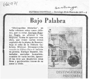 Bajo palabra. [artículo] Las Últimas Noticias (Diario : Santiago, Chile)-- ene. 23, 1977, p. 5. il. .