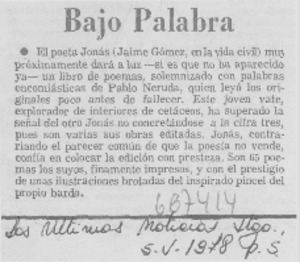 Bajo palabra. [artículo] Las Últimas Noticias (Diario : Santiago, Chile)-- mayo 5, 1978, p. 5. .