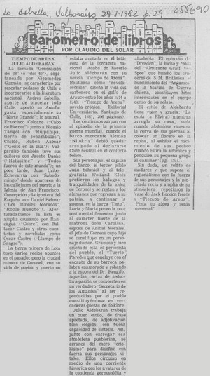 Barómetro de libros [artículo] / Claudio del Solar. La Estrella (Valparaíso, Chile)-- ene. 29, 1982, p. 29. .