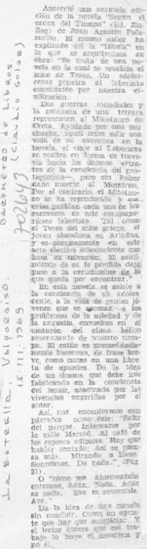 Sección Referencias Críticas. Palazuelos, Juan Agustín 1969.