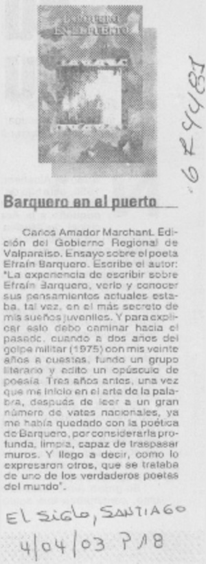 Barquero en el puerto. [artículo] El Siglo (diario : Santiago, Chile)-- abr. 4, 2003, p. 18. il. .