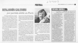 Benjamín Galemiri por partida doble en París [artículo] La Segunda (Santiago) sept. 27, 2002, p. 3 (suplemento "Por fin viernes") retr. .
