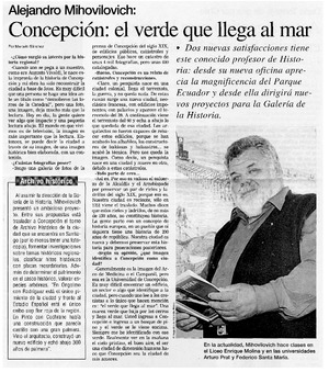 Concepción: el verde que llega al mar : [entrevista] [artículo] / Marcelo Sánchez. El Sur (diario : Concepción, Chile)-- ene. 28, 2003, p. 9. retr. .
