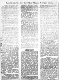 Confidencias del escritor Mario Vargas Llosa. [artículo] El Mercurio (Santiago, Chile)-- jul. 8, 1973, p. 5. .