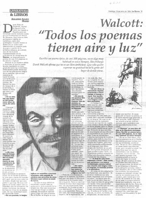 Derek Walcott [artículo] / Guillermo Altares Madrid. La Epoca-- jun. 19, 1994, p. 3. retr. .