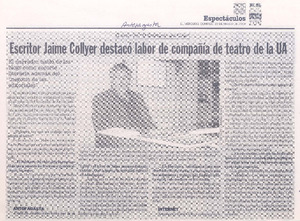 Escritor Jaime Collyer destacó labor de compañía de teatro de la UA [artículo]. El Mercurio (Diario : Antofagasta, Chile)-- mar. 30, 2009, p. A49. .