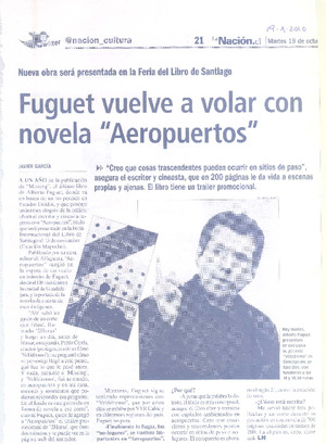 Fuguet vuelve a volar con novela "Aeropuertos" (entrevista) [artículo] / Javier García. La Nación (Diario : Santiago, Chile)-- oct. 19, 2010, p. 21. .