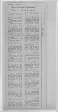 Hugo Correa, visionario pero no iría a la Luna: [entrevista] [artículo] El Sur (diario : Concepción, Chile)-- dic. 26, 1968. .