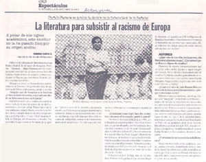 La literatura para subsistir al racismo de Europa (entrevista) [artículo]/ Rodrigo Ramos. El Mercurio (diario: Antofagasta, Chile) abr. 28, 2008, p. a26 .