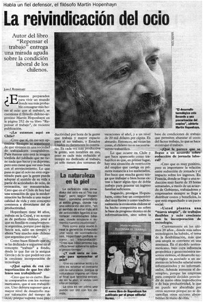 La reivindicación del ocio [artículo] / Juan I. Rodríguez. Las Últimas Noticias (Diario : Santiago, Chile)-- ago. 6, 2001, p. 19. retr. .