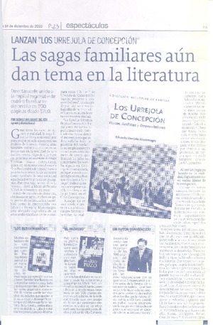 Las sagas familiares aún dan tema en la literatura (entrevista) [artículo] / Sebastián Grant del Río. El Sur (diario : Concepción, Chile)-- dic. 14, 2010, p. 23. .