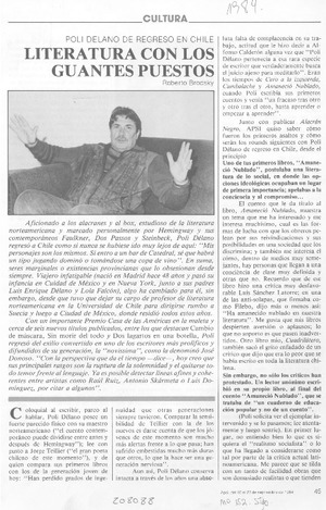Literatura con los guantes puestos : [entrevista] [artículo] / Roberto Brodsky. Apsi. -- no. 152 (sept. 10, 1984) p. 45-46 retr. .