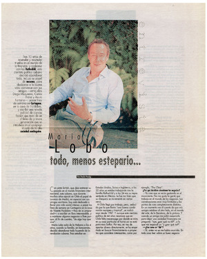 Mario Lobo todo, menos estepario [artículo] / Paola Passig. La Estrella (Arica, Chile)-- feb. 13, 2000, p. 3-4 (suplemento) retr. .
