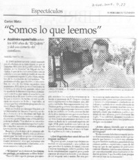 Mata Carlos somos lo que leemos / [artículo] : Marcelo Macellari. El Mercurio (Diario : Valparaíso, Chile) ene. 3, 2005, p. 22. .