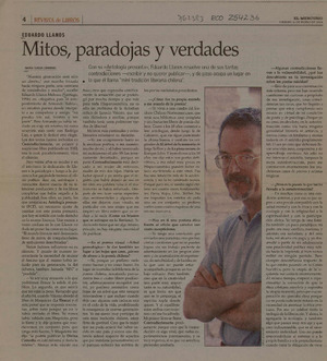 Mitos, Paradojas y verdades [artículo] / María Teresa Cárdenas. El Mercurio (Diario : Santiago, Chile)-- ene. 16, 2004, p. 4 (suplemento "Revista de Libros") retr. .