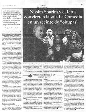 Nissim Sharim y el Ictus convierten la sala La Comedia en un recinto de "okupas" [entrevista] [artículo] / Javier Ibacache V. La Segunda (Diario : Santiago, Chile)-- jun. 24, 2005, p. 67. .