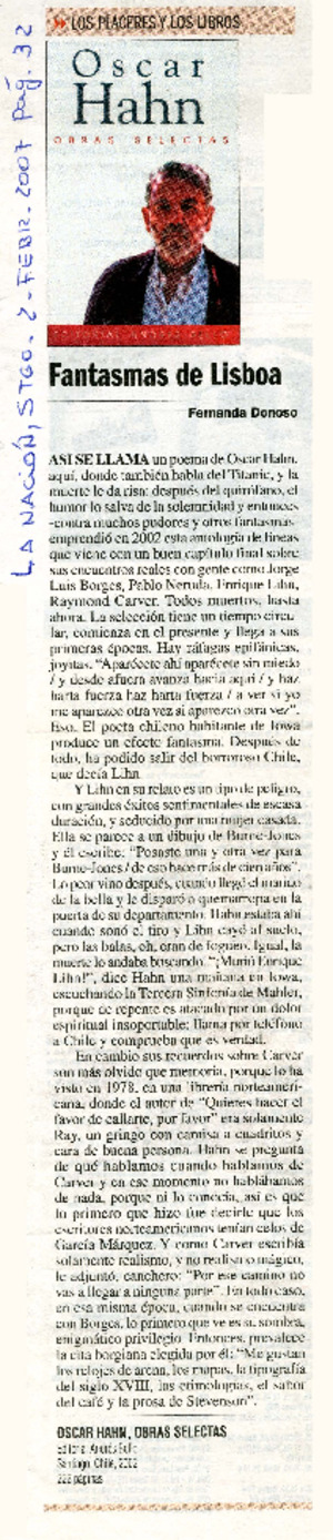 Nuera de Pinochet es best seller (entrevista) [artículo]/ Fabián Llanca. Las Últimas Noticias (Diario : Santiago, Chile)-- ene. 11, 2007, p. 9 .