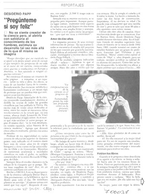 Pregúnteme si soy feliz" : [entrevista] [artículo] Andrea Orzegow.