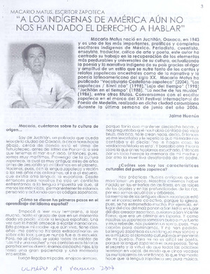Sección Referencias Críticas. Matus, Macario, 2007