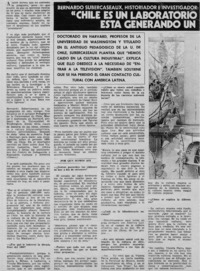 "Chile es un laboratorio cultural, donde el mercado está generando un nuevo sistema de valores": [entrevistas] [artículo] / Soledad Miranda. Cosas (Santiago, Chile)-- no. 130 (sept. 29, 1981) p. 34-35. retr. .