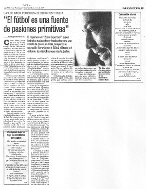 "El fútbol es una fuente de pasiones primitivas" [entrevista] [artículo] / Rodrigo Orellana C. Las Últimas Noticias (Diario : Santiago, Chile)-- ene. 23, 2005, p. 23. .