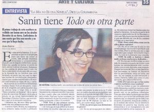 "La mía no es una novela", dice la colombiana : Saín tiene Todo en otra parte [entrevista] [artículo] / Jairo Patiño. Tiempos de mundo (Santiago, Chile)-- mayo 5, 2005, p. 35. .