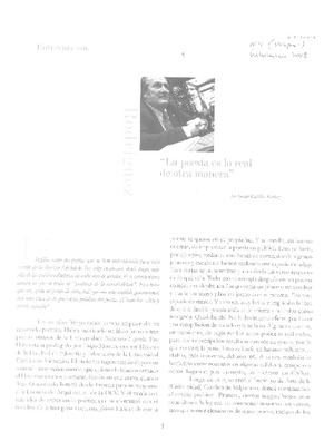 "La poesía es lo real de otra manera" (entrevista) [artículo] / Ismael Gavilán Muñoz. Antítesis (Valparaíso, Chile) no. 4 (invierno 2008) p. 5-9. .