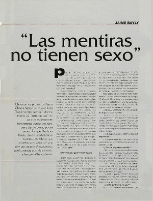 "Las Mentiras no tienen sexo" [artículo] / Alejandra Parada. Cosas (Revista : Santiago, Chile)-- mar. 8, 2002, p. 94-97. retr. .