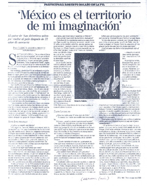 "México es el territorio de mi imaginación" (entrevista) [artículo] / Carmen Gloria Bravo. Reforma (México)-- Nov. 1999 (supl. FIL '99) p. 8. .