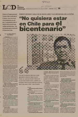 "No quisiera estar en Chile para el bicentenario" (entrevista ) [artículo] Gabriela Hormaechea.