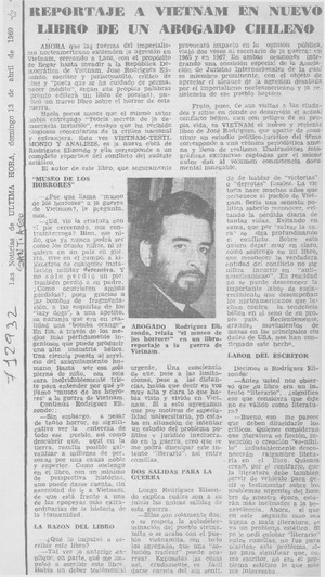 Autores chilenos - Rodríguez Elizondo, José - Ultima Hora (Santiago, Chile)-- - Vietnam, testimonios y análisis - [entrevista]
