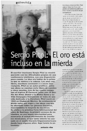 Sergio Pitol, el oro está incluso en la mierda [artículo] / Antonio Riba. Rocinante (Santiago, Chile)-- no. 25 (nov. 2000) p. 16-17. retr. .